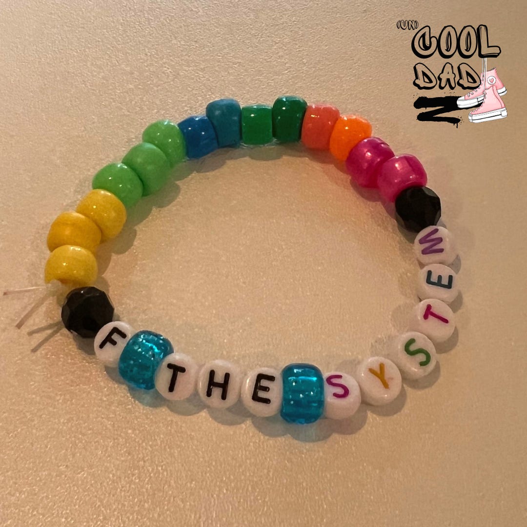 If you recall, my wife and I enjoy the occasional EDM festival and like to assume the full costume of the eclectic genre. “Kandi,” as it were, is a storied EDM tradition of creating and sharing complex offerings that connote elements of peace and harmony among connected souls. Or cheap crafts made by 26-year-old Abercrombie & Fitch models gyrating out of their gourds who had one too many somethings. At a local event last year, my wife was thrilled to be presented with her first kandi by a group of guys wearing thongs and angel wings—par for the course. We examined her new trophy and chuckled at the ironic PG-13 phrase and percolating millennial anger that reminded us of own tragic youth (Emo culture peaked when I was in high school. I rocked unbelievably baggy JNCO jeans—post-sweatpants—tethered with a wallet chain while anguishing to Taking Back Sunday. What a time.)