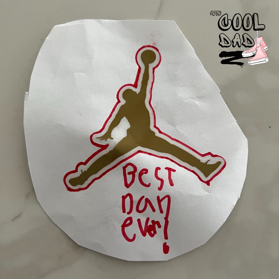 My name is Ryan and I’m addicted to sneakers. I’ve had an obsession over the newest, coolest and craziest shoes since I was in middle school, but the addiction started in earnest during my early adulthood when I had an actual job. From Jordan and Yeezy to Nike and New Balance (yes, NB is now a hot commodity in the fashion world! Father’s everywhere, rejoice!), I’m a sneakerhead with more kicks than my wife and children combined. Of course, I’ve passed the virus along to my family who are now too cool for school to be seen in the Marshalls shoe aisle. (I see it differently. The department store is where I cut my teeth and learned the craft, searching for a hidden gem with a small scuff or imperfection.) So needless to say, my excitement was next level when a box arrived at our door containing a fresh pair of cherry red Air Jordan 1 Highs and off-pink Air Max 90s for my 5-year-old daughter Saoirse. Her eyes lit up when she unboxed the precious gems, immediately offering a huge daddy hug and this gem of a note (above), courtesy of the complimentary Jumpman sticker inside the package. My cool dad vibes were short-lived, however, as my other daughter burst into tears and ran upstairs screaming, “I never get anything! You don’t love me!” Well, you win some and you lose some.